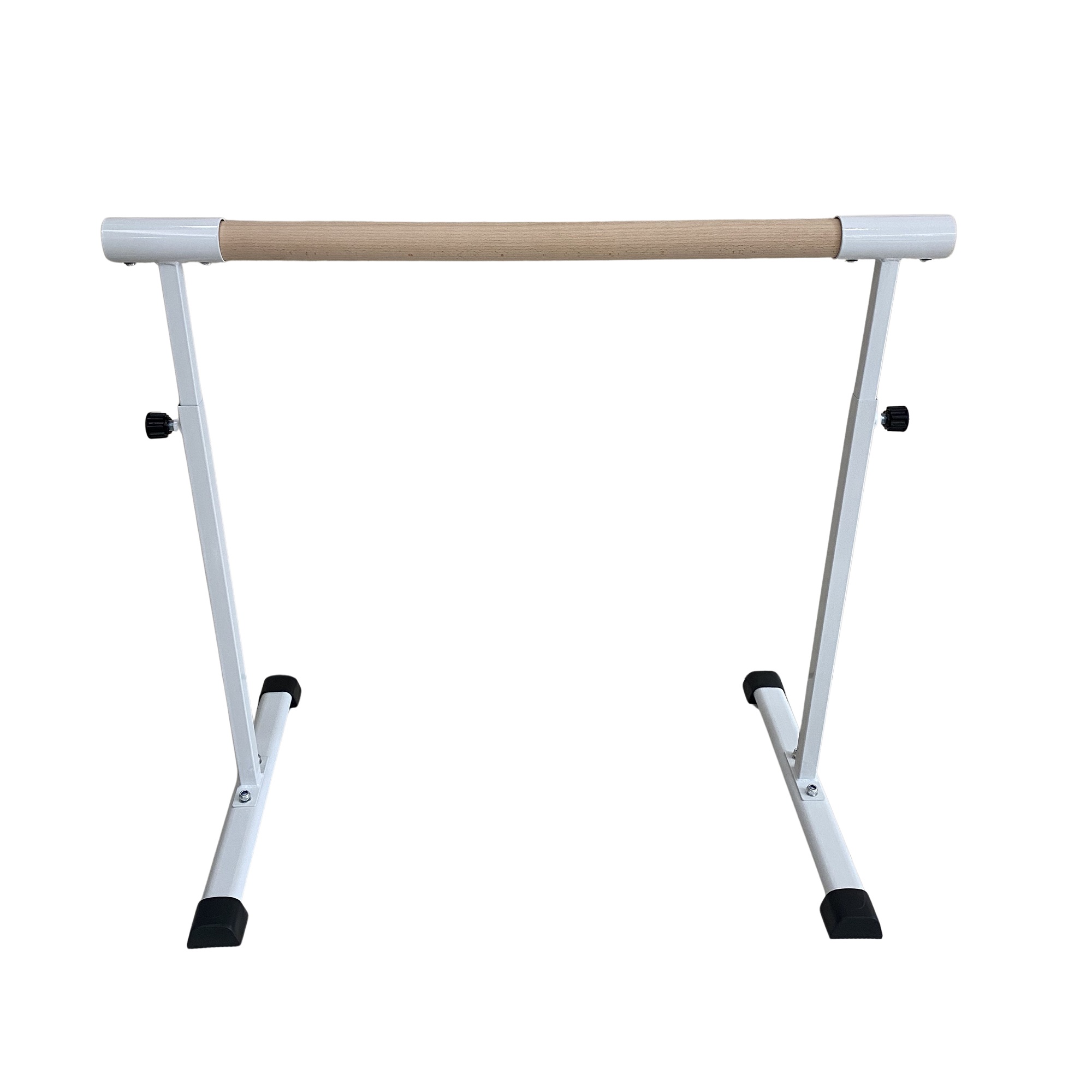 Baletná tyč MASTER je voľne stojaca 110 cm široká baletná tyč s oceľovou konštrukciou, ktorá umožňuje nastaviť výšku drevenej tyče v dvoch stupňoch - 85 cm alebo 100 cm nad zemou.