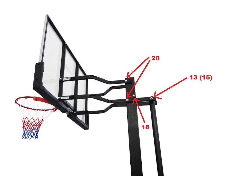 - vzdialenosť medzi odrazovou doskou koša a hlavnou tyčou 60,8 cm