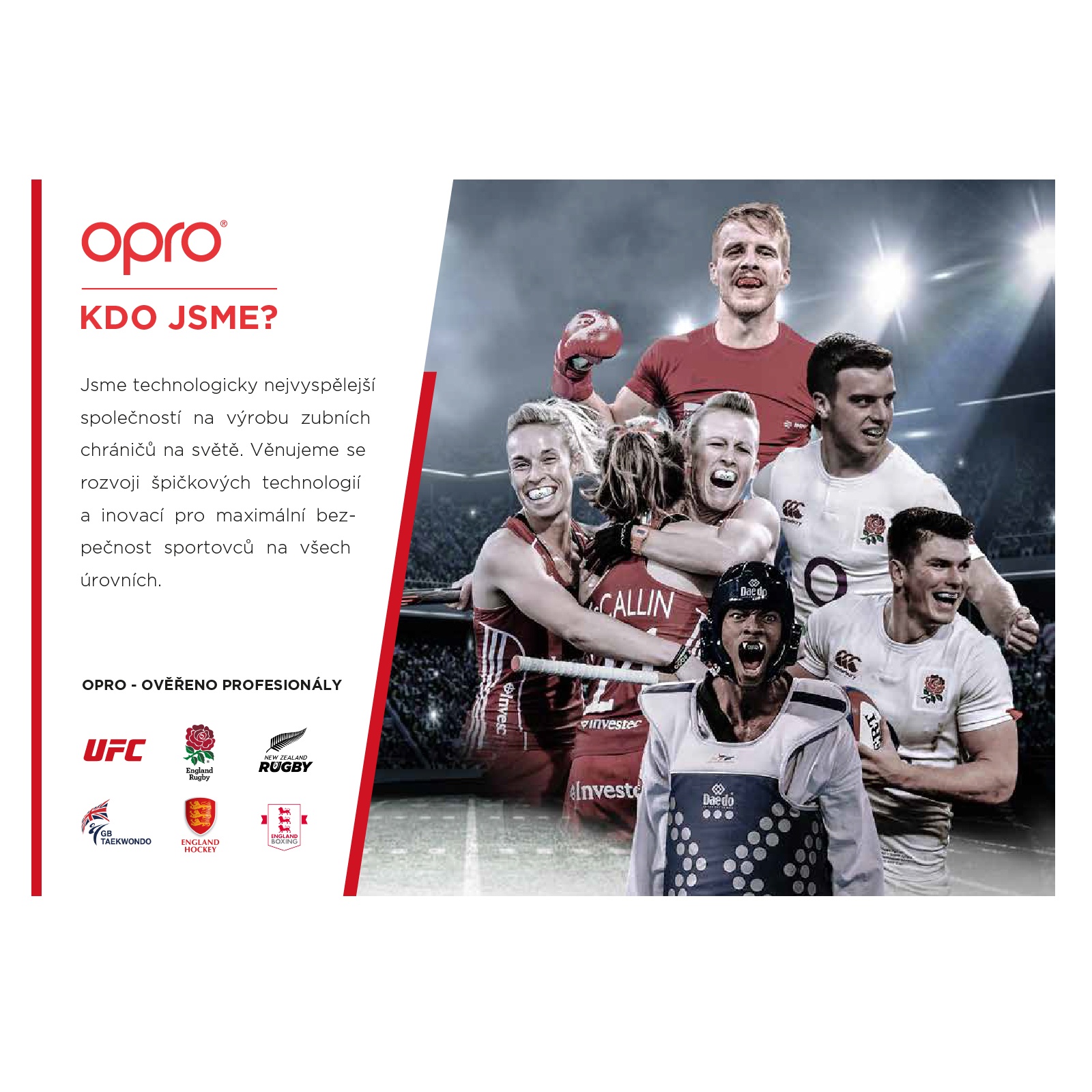 OPRO je technicky najvyspelejšou spoločnosťou na výrobu zubných chráničov na svete a je hlavným priekupníkom vo vývoji v oblasti ústnej ochrany. Z moderného výrobného závodu vo Veľkej Británii sa značka venuje rozvoju špičkových technológii, inováciou a bezpečnosťou pre športovcov na všetkých úrovniach. Množstvo profesionálnych svetových športovcov, ktorí nosia chrániče OPRO, ukazuje, ako je podpora a inšpirácia na dlhej ceste k športovému úspechu rozhodujúca.