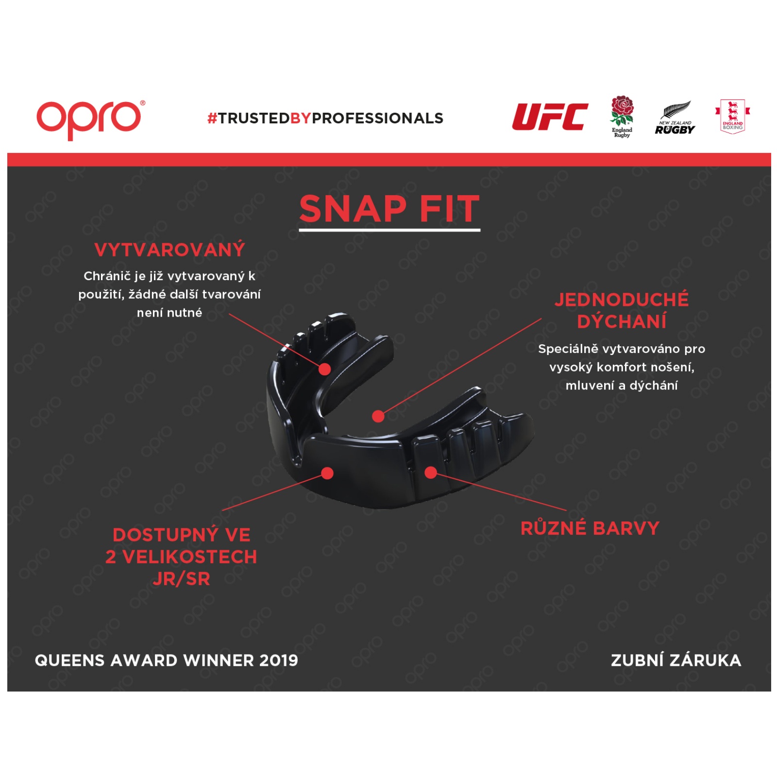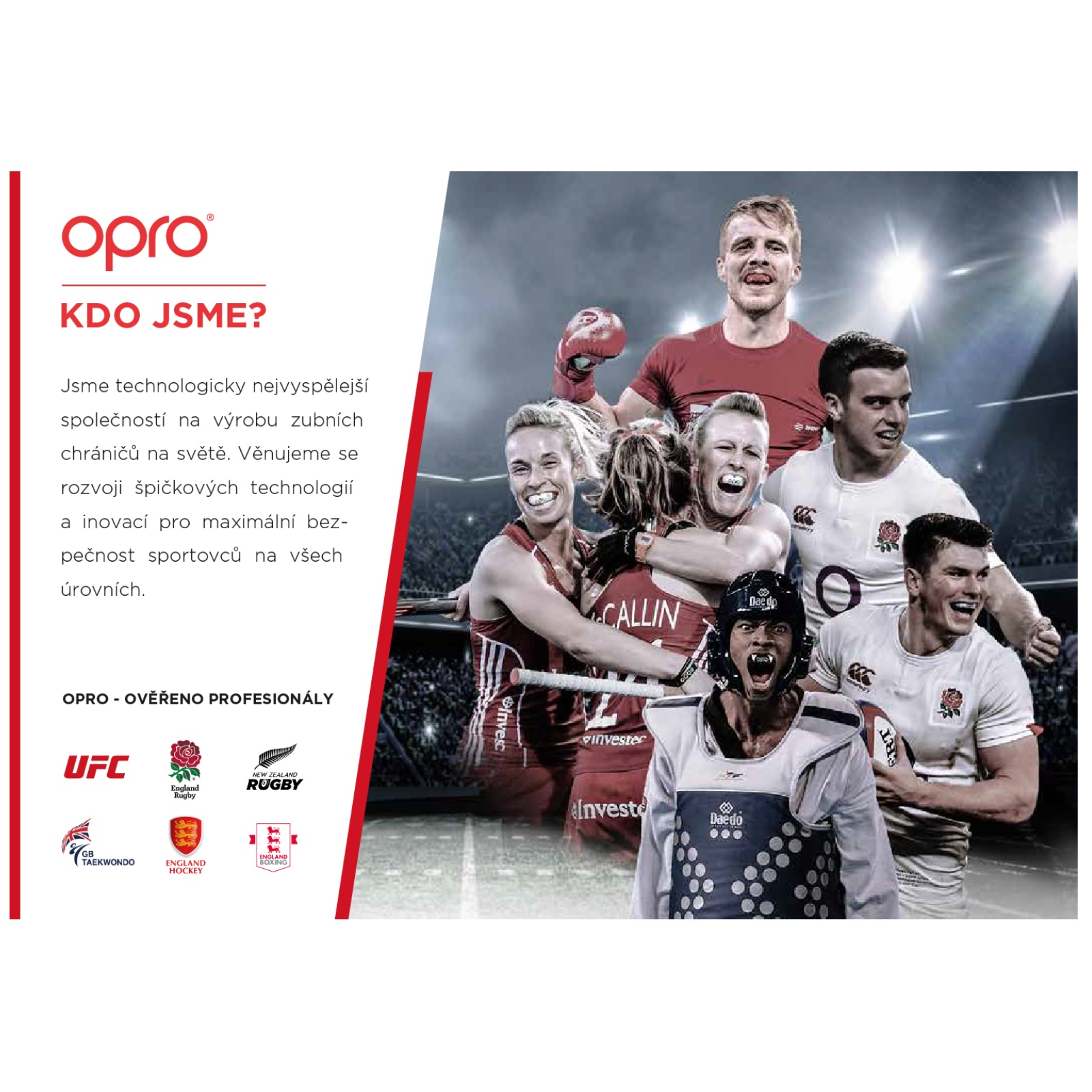 OPRO - oficiálny chránič zubov Jiřího Procházky, ragbyového zväzu Anglie, Nového Zélandu a mnoho ďalších.
