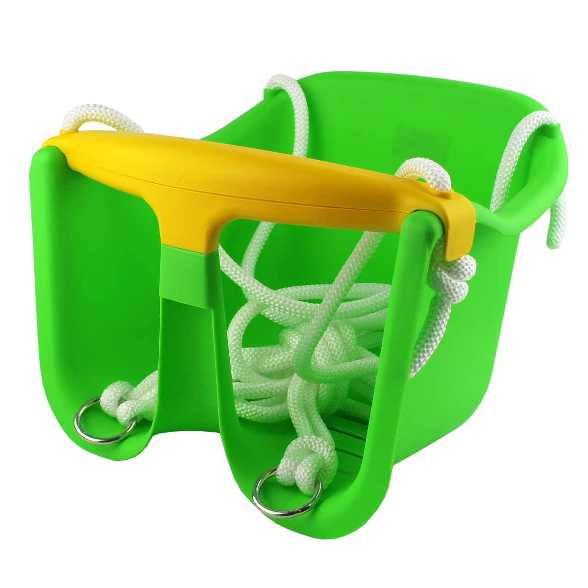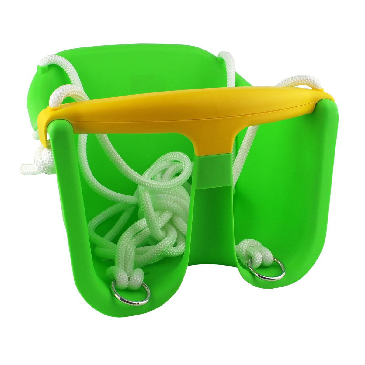 Detská plastová hojdačka CHEVA Baby je vďaka bezpečnostnej poistke vhodná pre najmenšie deti od 12 mesiacov.