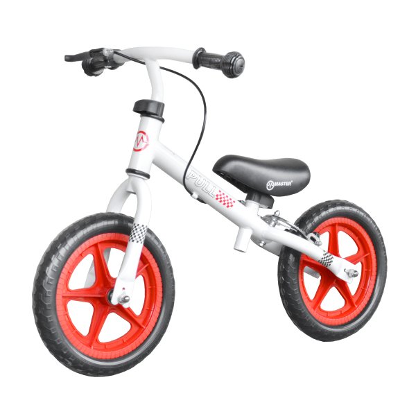 Oproti predchádzajúcemu detskému odrážadlu sa odrážadlo MASTER Pull príliš nelíši. Rám odrážadla je opäť vyrobený z ocele, je vybavené bantamovými kolesami s rozmerom 12", a súčasťou tohto detského odrážadla sú gumové rúčky tiež so skvelou adhéziou.
