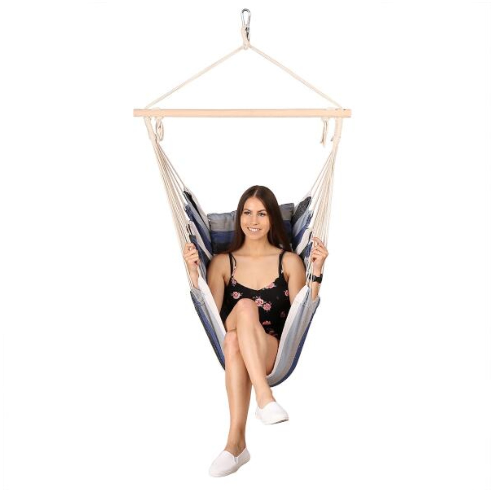 Kreslo NILS Camp NC3107 je ideálnym nástrojom na leňošenie na záhrade, na chvíle pohody trávenej na balkóne alebo na odpočinok pri kempovaní v prírode. Konštrukcia brazílskeho kresla vychádza z hojdacej siete. Textilná časť je vyrobená z T/C plátna (kombinácia polyesteru a bavlny), ktoré je pomocou jednotlivých lán tvarované do tvaru kresla. Laná prechádzajú cez drevenú priečku a zbiehajú sa do závesného oka. Kreslo stačí vybaliť, zavesiť kamkoľvek do vhodnej výšky a už môžete odpočívať napríklad pri čítaní obľúbenej knihy. Model NC3107 je navyše vybavený 2 pohodlnými vankúšmi. Použité materiály zaisťujú nielen priedušnosť a pohodlnosť kresla, ale aj jeho dlhú životnosť a odolnosť.