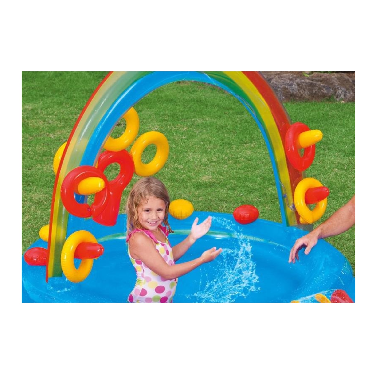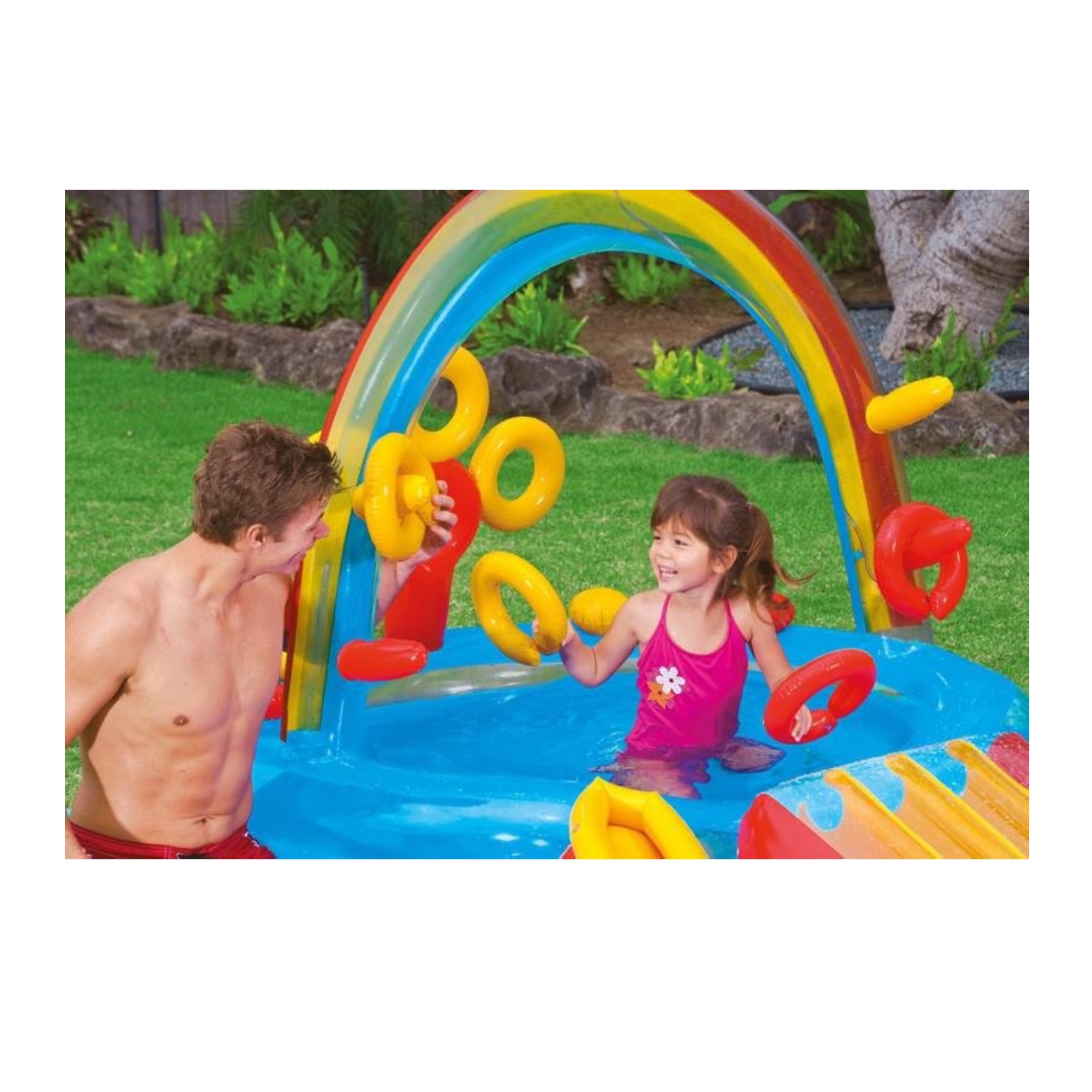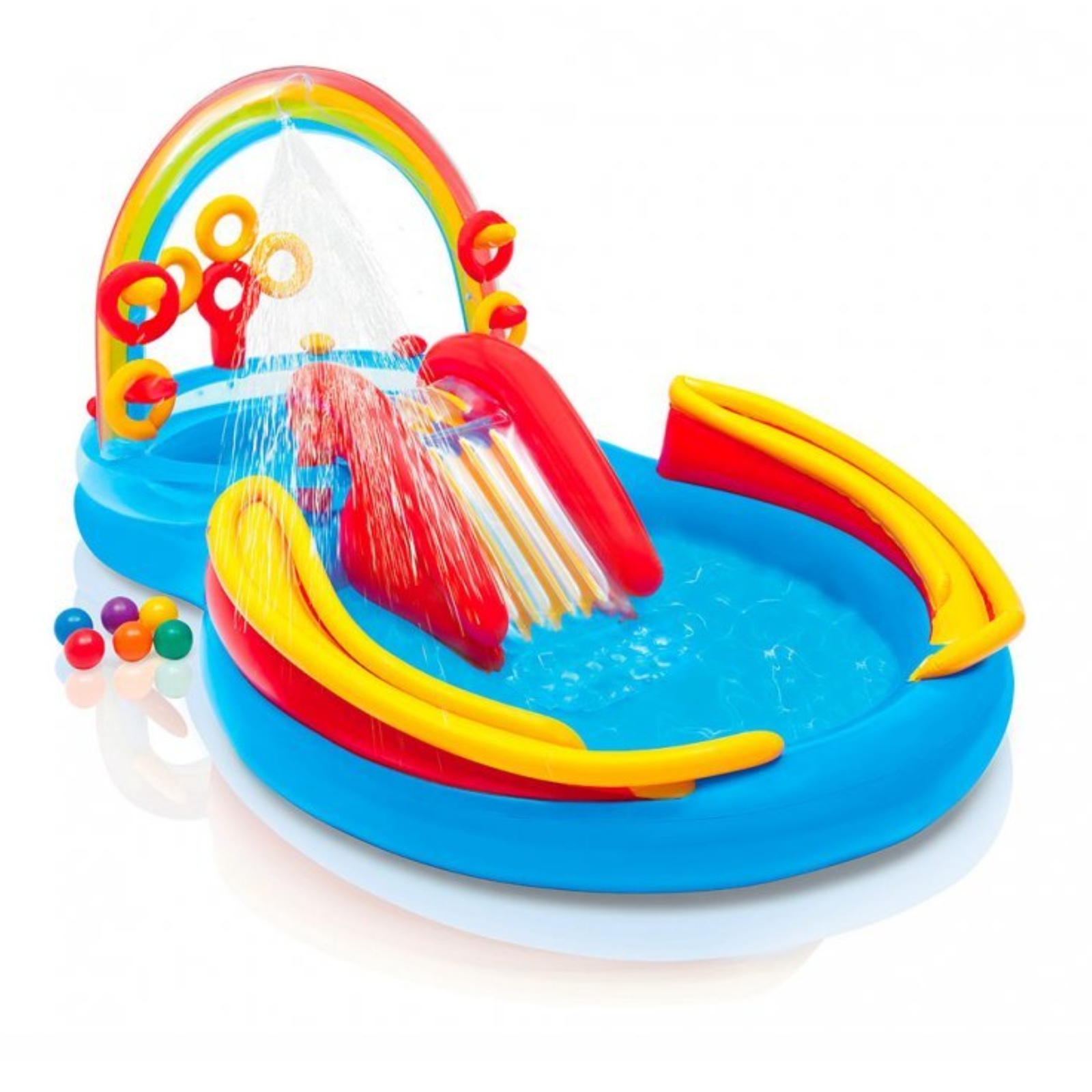 Je detské nafukovacie hracie centrum so šmykľavkou. Centrum tvoria dva spojené bazéniky so šmykľavkou. Vodná sprcha je umiestnená v dúhovom oblúku a je funkčná po napojení na záhradnú hadicu. Súčasťou je vodná šmykľavka, menší bazén a bazén, hra s nafukovacími kruhmi a dráhy pre plastové loptičky, sprcha pre napojenie záhradnej hadice. Kapacita vody v menšom bazéniku pri výške vody 17 cm je 201 l, a kapacita vody v brudzalisku pri výške 25 cm je 227 l. Maximálna nosnosť je 81 kg.