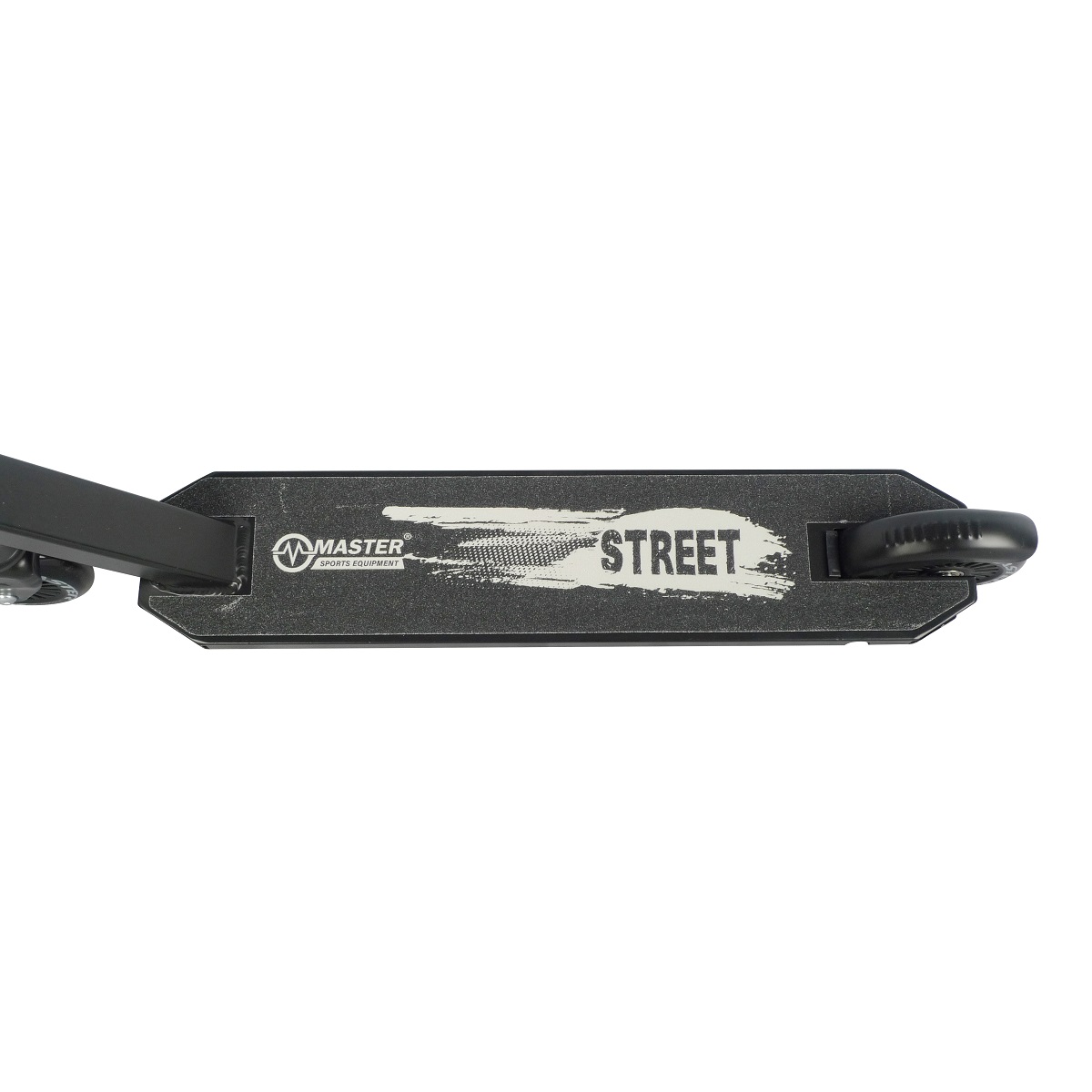 Master STREET je ideálnou kolobežkou pre všetky deti, ktoré si chcú užiť veľa zábavy. Vďaka svojej konštrukcii je vhodná pre jazdu a robenie trikov na ulici alebo v skateparku. Rám je vyrobený z hliníka, a preto je nielen pevný, ale tiež ľahký. Odolná konštrukcia pritom unesie až 100 kg. Kolobežka má špeciálne 360° riadidlá z chromovanej ocele v tvare Y. Má tiež drážkované TRP rukoväte, ktoré zaistia pevnejšie uchopenie ako bežne gumové rukoväte. Môžete sa spoľahnúť, že sa vám ani pri drsnej jazde nebude ruka šmýkať.