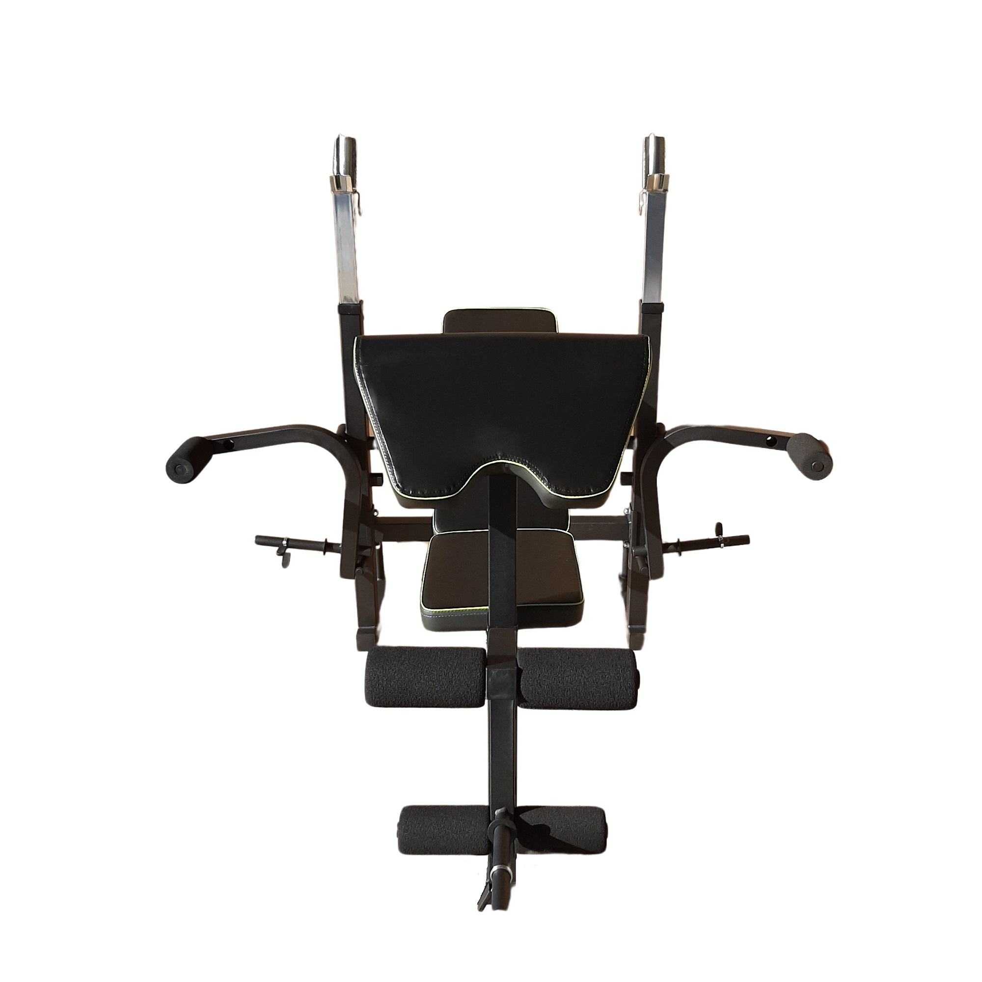Kompaktná posilňovacia lavica pod veľkú činku MASTER Rambo 3 pre mnohostranné posilňovanie a svalový tréning. Lavička ponúka výškovo nastaviteľný stojan pre cvičenie s veľkou činkou s bezpečnostnými závlačkami, motýlik, predkopávanie / zakopávanie.