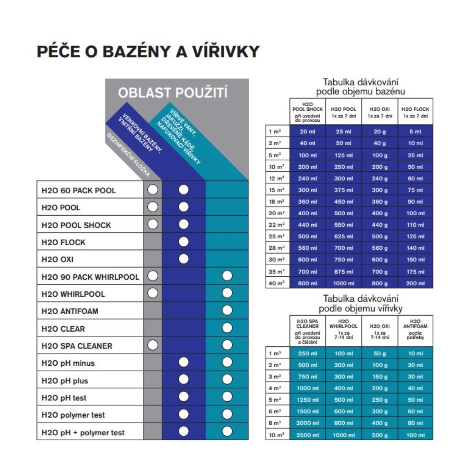 Ideálna hodnota pH pri používaní bezchlórové a chlórové dezinfekcia vody je 7,0 - 7,4. Ak pH opustí túto vymedzenú oblasť, dochádza k zníženiu účinnosti a zvýšenie spotreby dezinfekčných prípravkov. Pri nízkom ph (pH <7,2) korodujú kovové časti bazéna a víriviek a rýchlejšie blednú farby plastov a fólií v bazéne a vírivke. Pri vysokom pH (> 7,6) dochádza k zakalenie vody a tvorbe rias. Môže tiež dôjsť k podráždeniu očných spojiviek a kože.