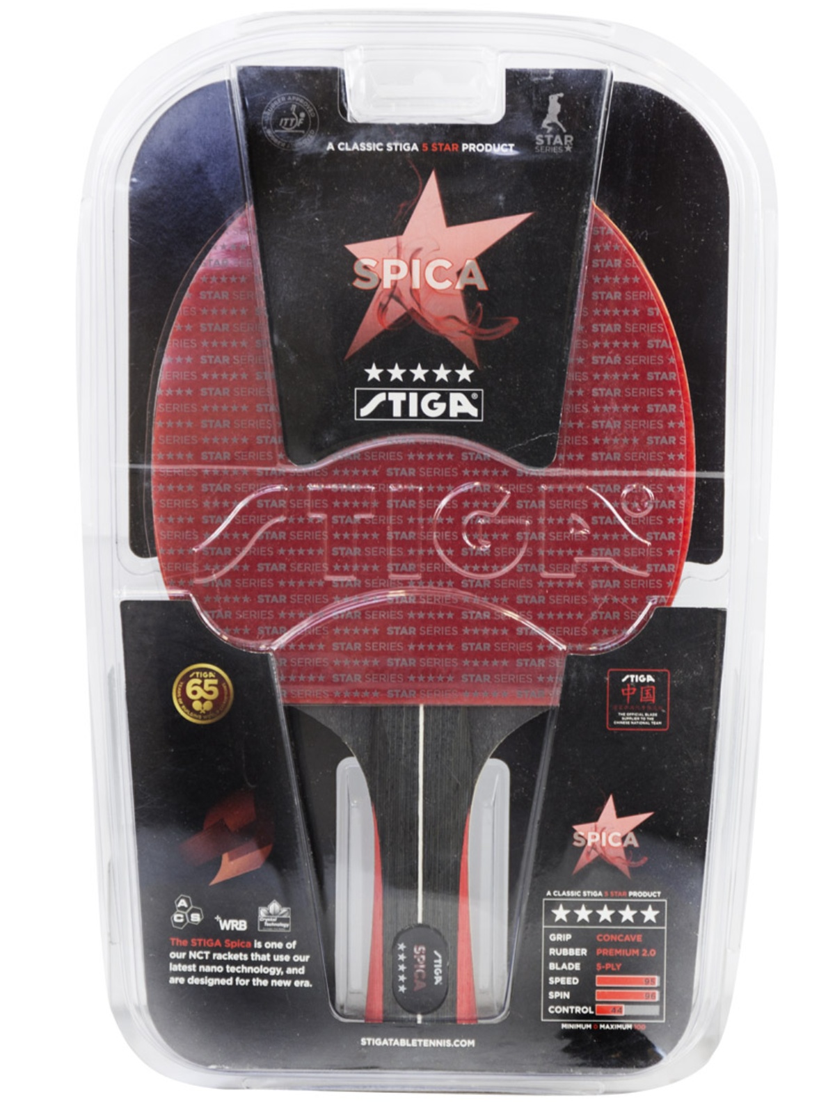 Päťhviezdičková pálka Stiga Spica je závodný model, ktorý je určený výhradne pre silových útočných hráčov, ktorí vyznávajú rýchly a tvrdý štýl hry. Vďaka poťahu Premium 2,00 mm zvyšuje pálka razanciu a rýchlosť úderu do loptičky.
