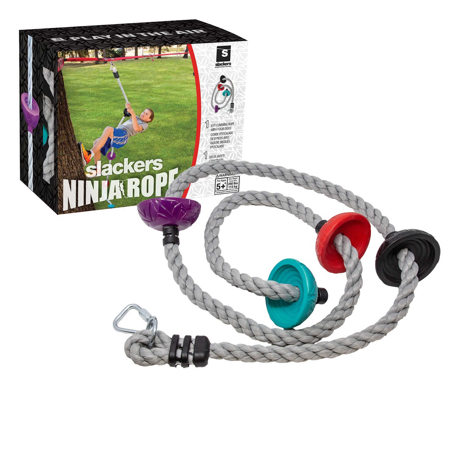 Šplhacie lano SCHILDKROT Ninja Rope je 2,5 m dlhé a 2,6 cm silné lano odolné poveternostným vplyvom, ktoré má na sebe 4 okrúhle stupne vo vzdialenosti 45 cm od seba. Lano sa dá ľahko upevniť k Ninjaline, hojdacím rámom, domčekom na stromoch alebo vetvám, pomocou kovovej karabíny, ktorá je súčasťou balenia. Maximálna nosnosť je 120 kg.