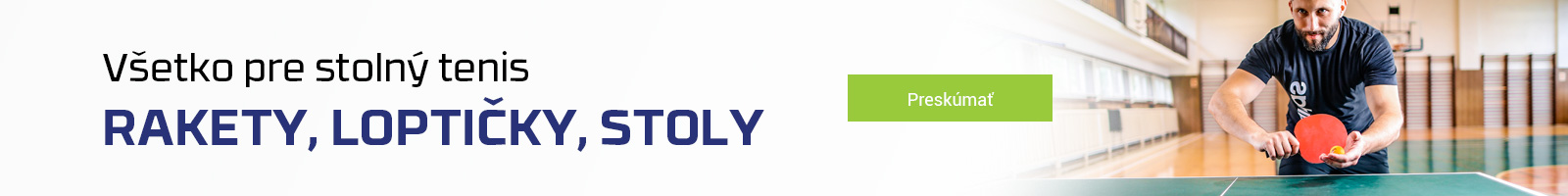 loptičky, ktoré ponúkame v zaujímavých moderných dizajnoch. Zároveň si prikúpte drobnosti, akými sú čistiace špongie a sprej na gumové poťahy rakiet, lak na ošetrenie drevených častí rakiet alebo lepidlá