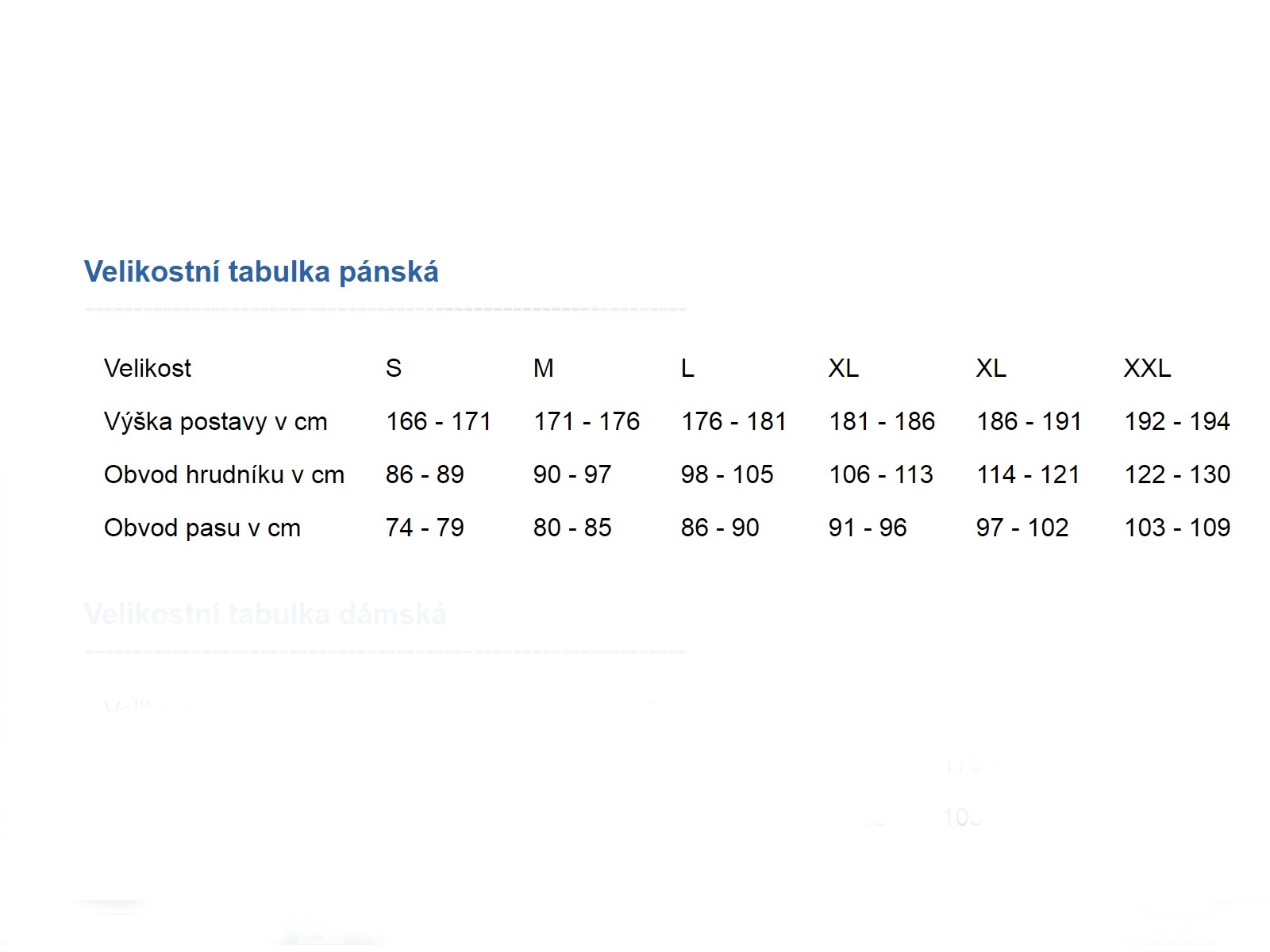 - veľkosť: S, M, L, XL, XXL