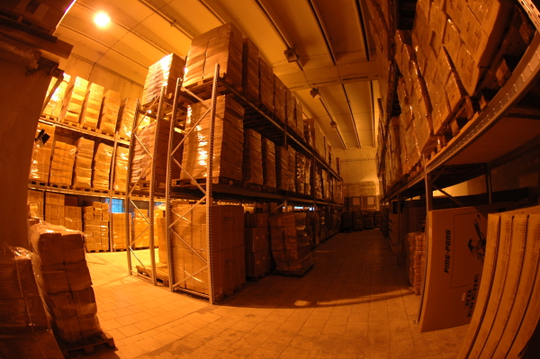 Športové potreby skladujeme v skladoch s rozlohou 2 500 m2 podlahovej plochy, kedy asi polovica skladových priestorov je regálována pre zvýšenie kapacity našich skladov.